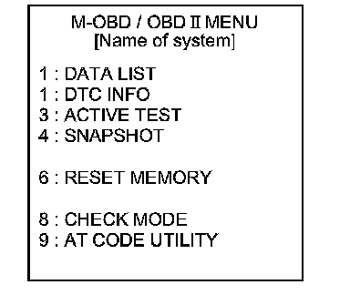 (5) Select the item "DIAGNOSIS / OBD/MOBD / ECT / RESET MEMORY".