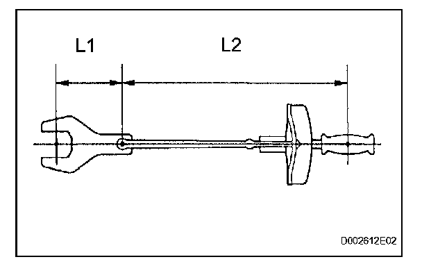 1. Use the formula below to calculate special torque values for situations where SST or an extension tool is combined with the torque wrench.