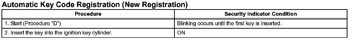 - When no key is inserted in the key cylinder while the system is in automatic key code registration mode, the security indicator remains on.