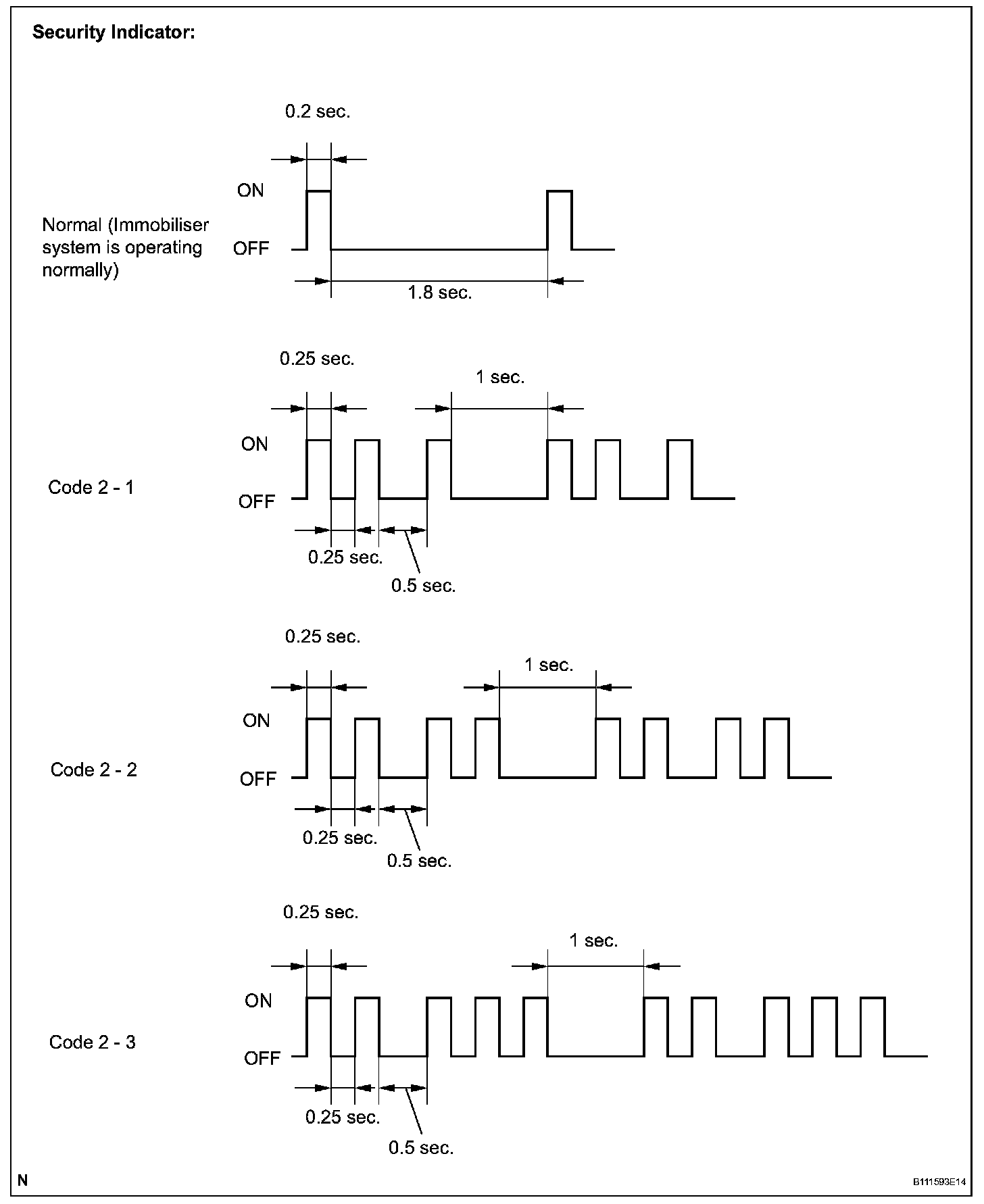 - When the immobilizer system is operating normally and the key is pulled out, the security indicator blinks continuously.