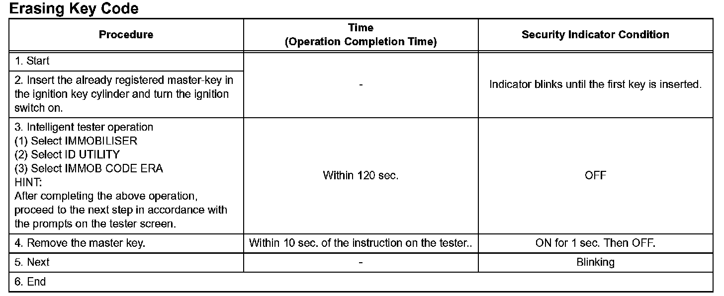 1. Turn the ignition switch on and off 5 times within 10 seconds using the already registered master key.