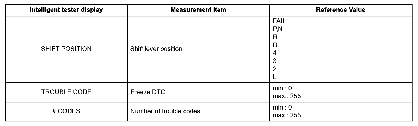 - Freeze frame data at the time a DTC is detected: When the skid control ECU stores data at the time a DTC is detected, no updates will be performed until the data is cleared.