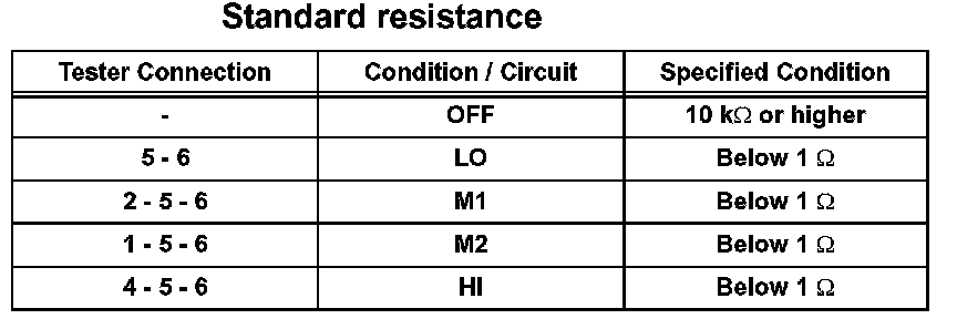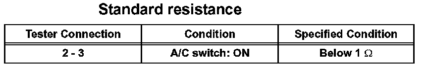 1. Connect the positive (+) lead from the battery to terminal 2 and the negative (-) lead to terminal 4 while the A/C switch is pressed, then check that the indicator lights up.