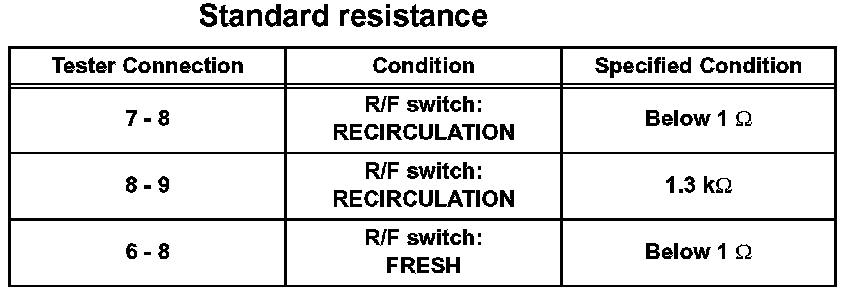 1. Connect the positive (+) lead from the battery to terminal 9 and the negative (-) lead to terminal 8 while the R/F switch is pressed, then check that the indicator lights up.