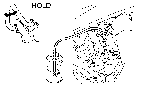 (1) Connect the vinyl tube to the bleeder plug at the right front wheel or the right rear wheel and loosen the bleeder plug.