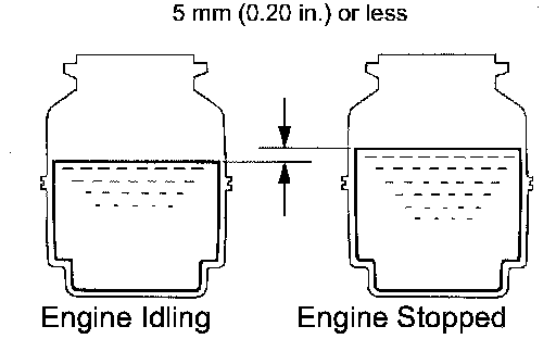 (f) With the engine idling, measure the fluid level in the oil reservoir.