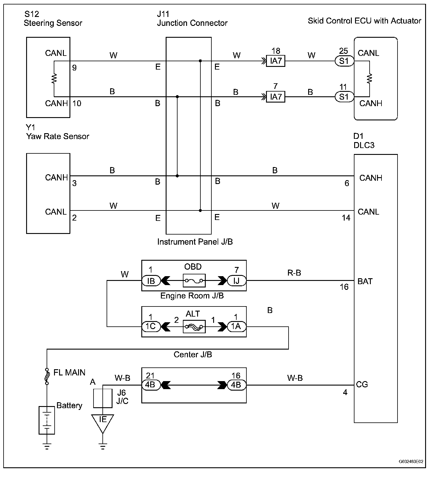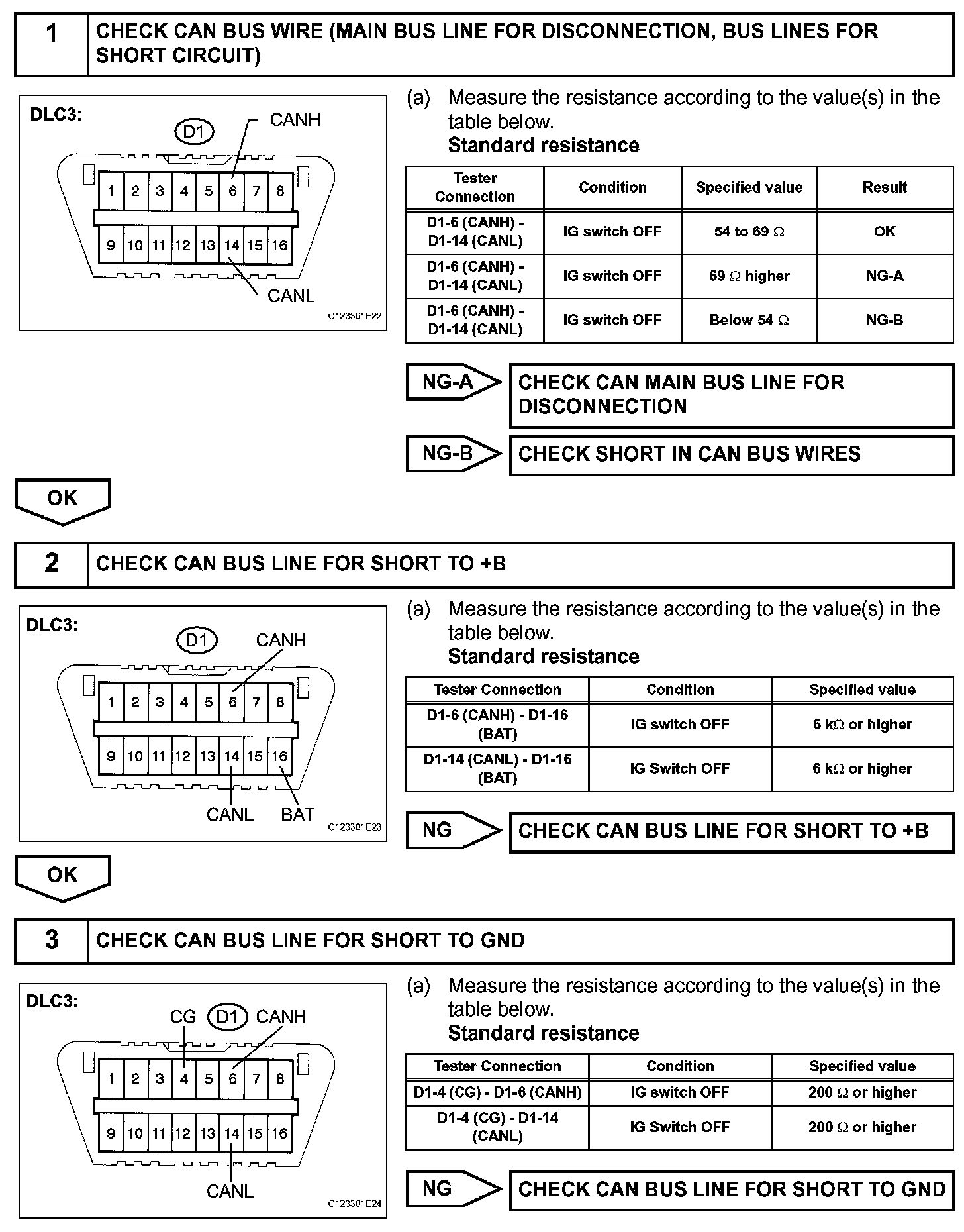 When any DTC for the CAN communication is output, first measure the resistance between the terminals of the DLC3 and the yaw rate sensor connector to specify the trouble area.
