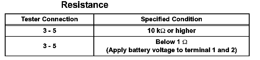 Using an ohmmeter, measure the resistance between the terminals.