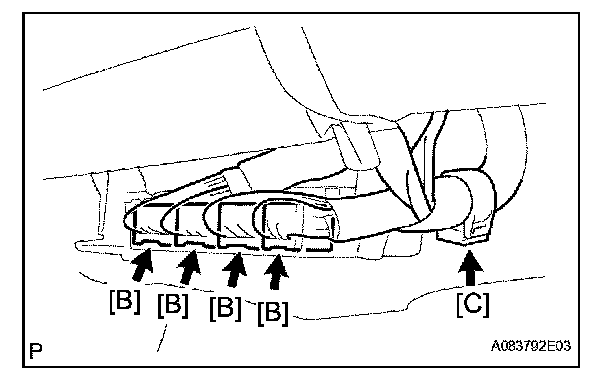 c. Install the wire harness clamp [C].