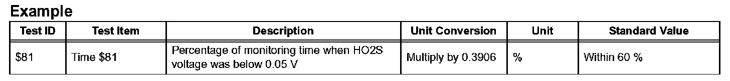 b. Use the Unit Conversion (conversion factor value) in the O2S Test Result table to calculate the Test Value.