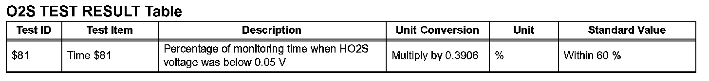 - Specifics of each Test Item, Description, Unit Conversion and Standard Value are descried in the paragraph titled "O2S TEST RESULT" in each DTC section relating to the HO2 sensor, such as P0130, P0133 and P0136.