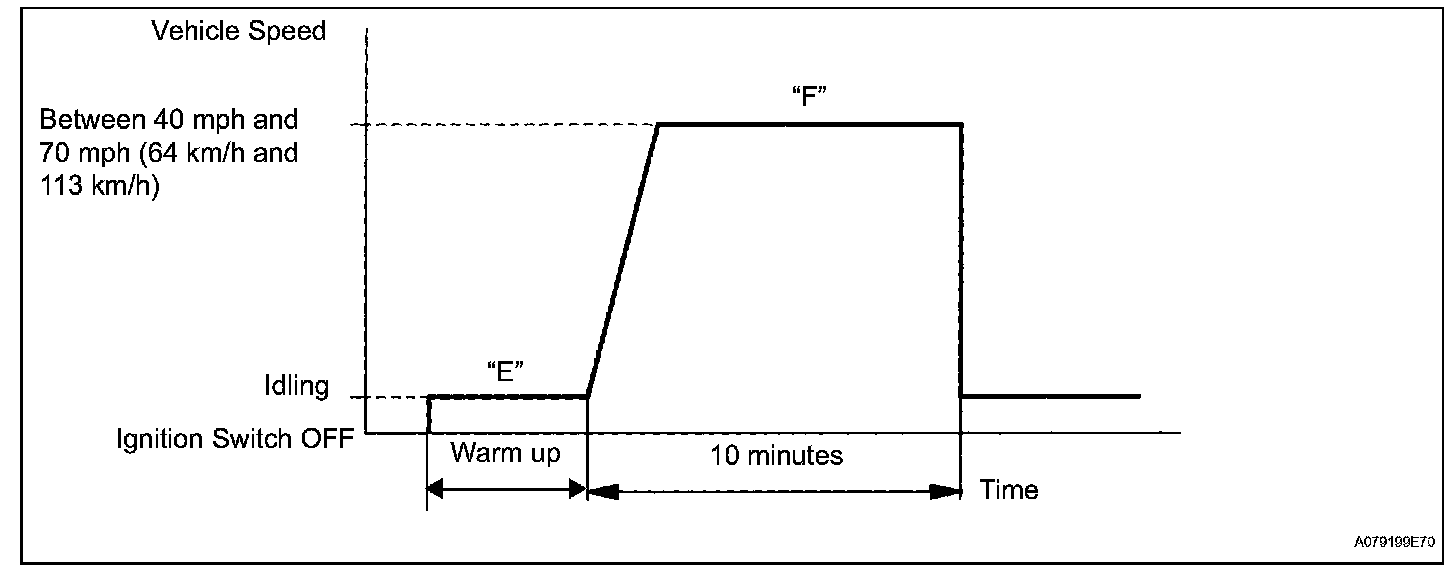 6. Drive the vehicle at between 40 mph and 70 mph (64 km/h and 113 km/h) for at least 10 minutes (Procedure "F").