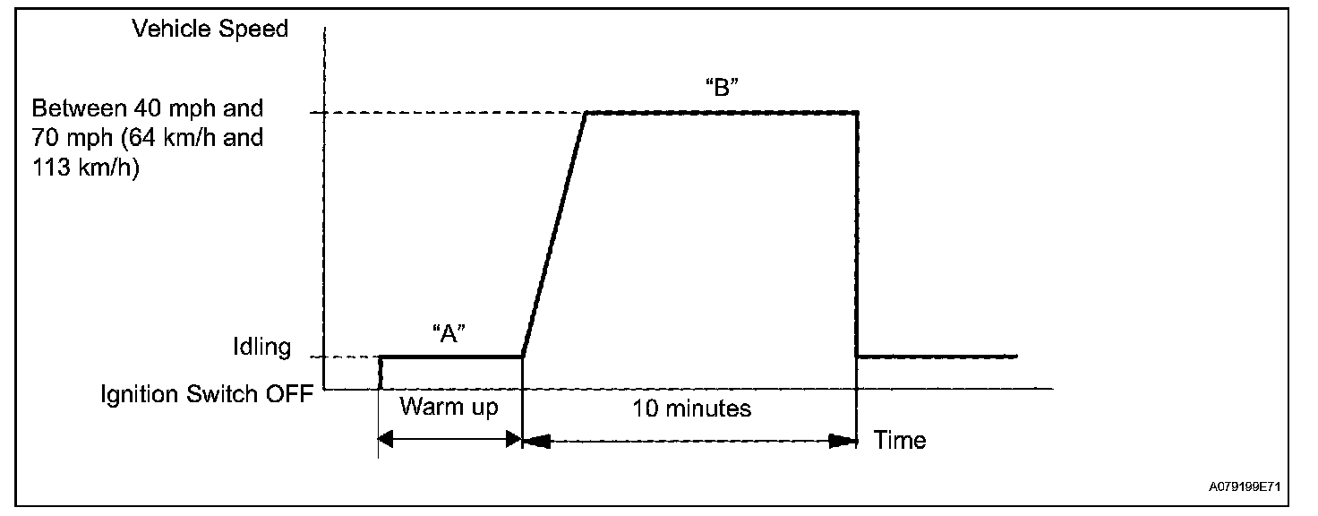 6. Drive the vehicle at between 40 mph and 70 mph (64 km/h and 113 km/h) for at least 10 minutes (Procedure "B").