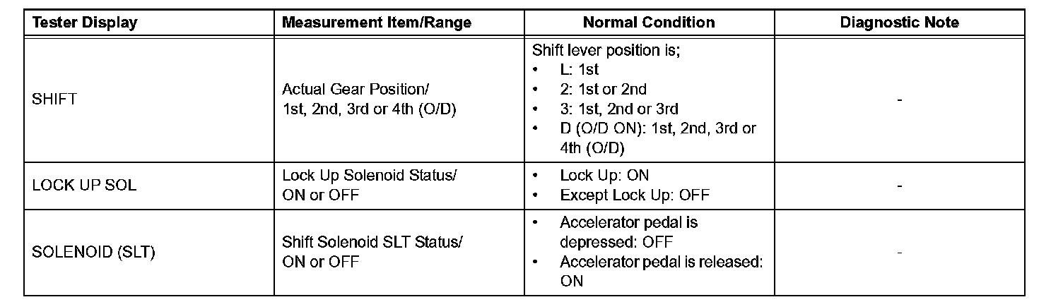*: "SOLENOID (SLT)" in the ACTIVE TEST is performed to check the line pressure changes by connecting the SST to the automatic transaxle, which is used in the HYDRAULIC TEST as well. Hydraulic Test