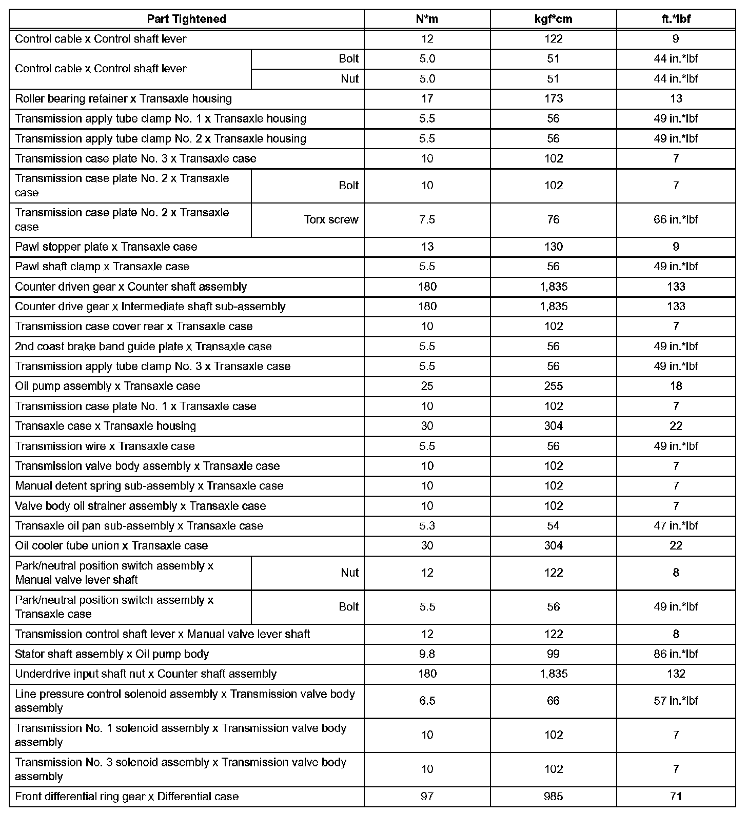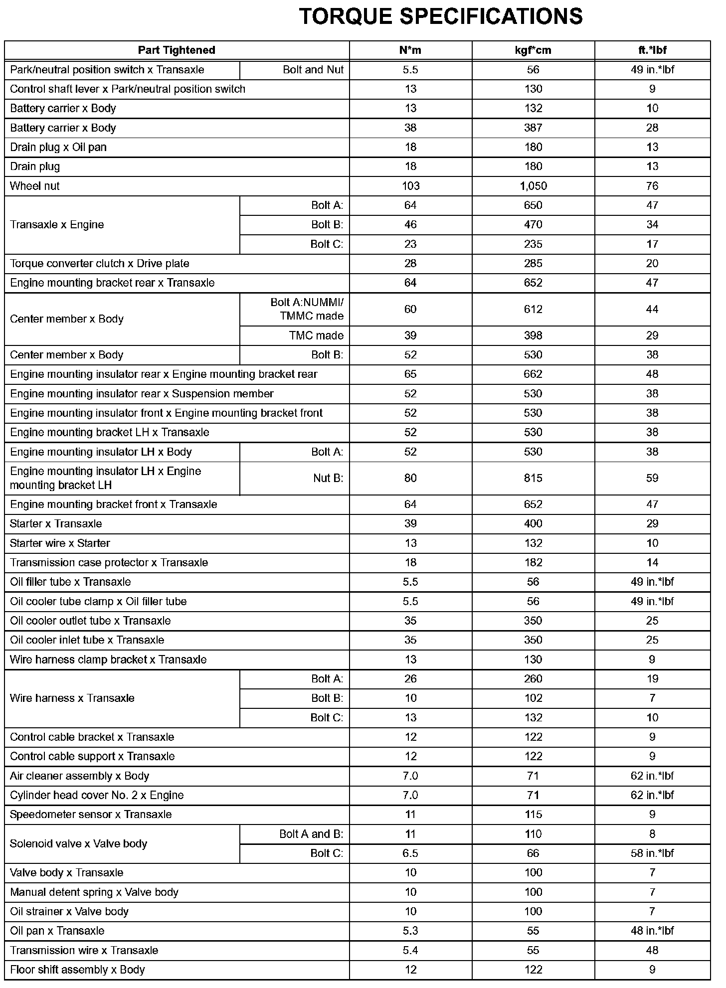 Automatic Transaxle - Torque Specifications (Part 1):