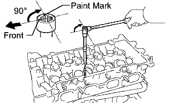 Mark the front of the cylinder head bolts with paint.