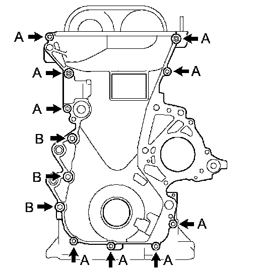 Stud bolt x Timing chain cover sub-assembly 5.0 Nm (51 kgf-cm, 44 inch lbs.)