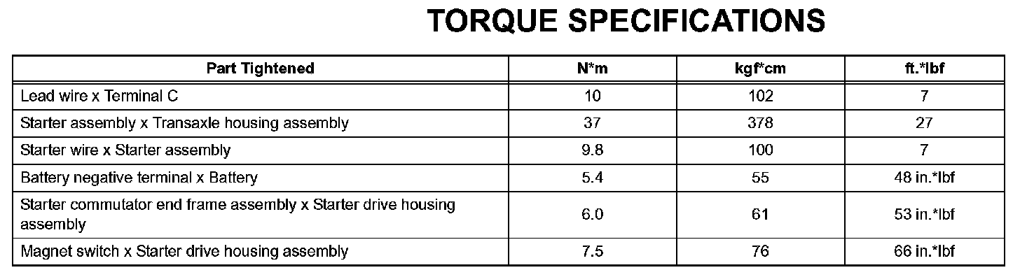 Starting - Torque Specifications: