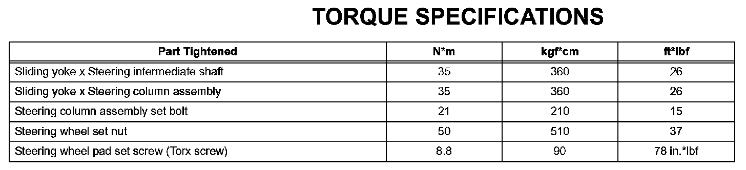 Steering Column - Torque Specifications: