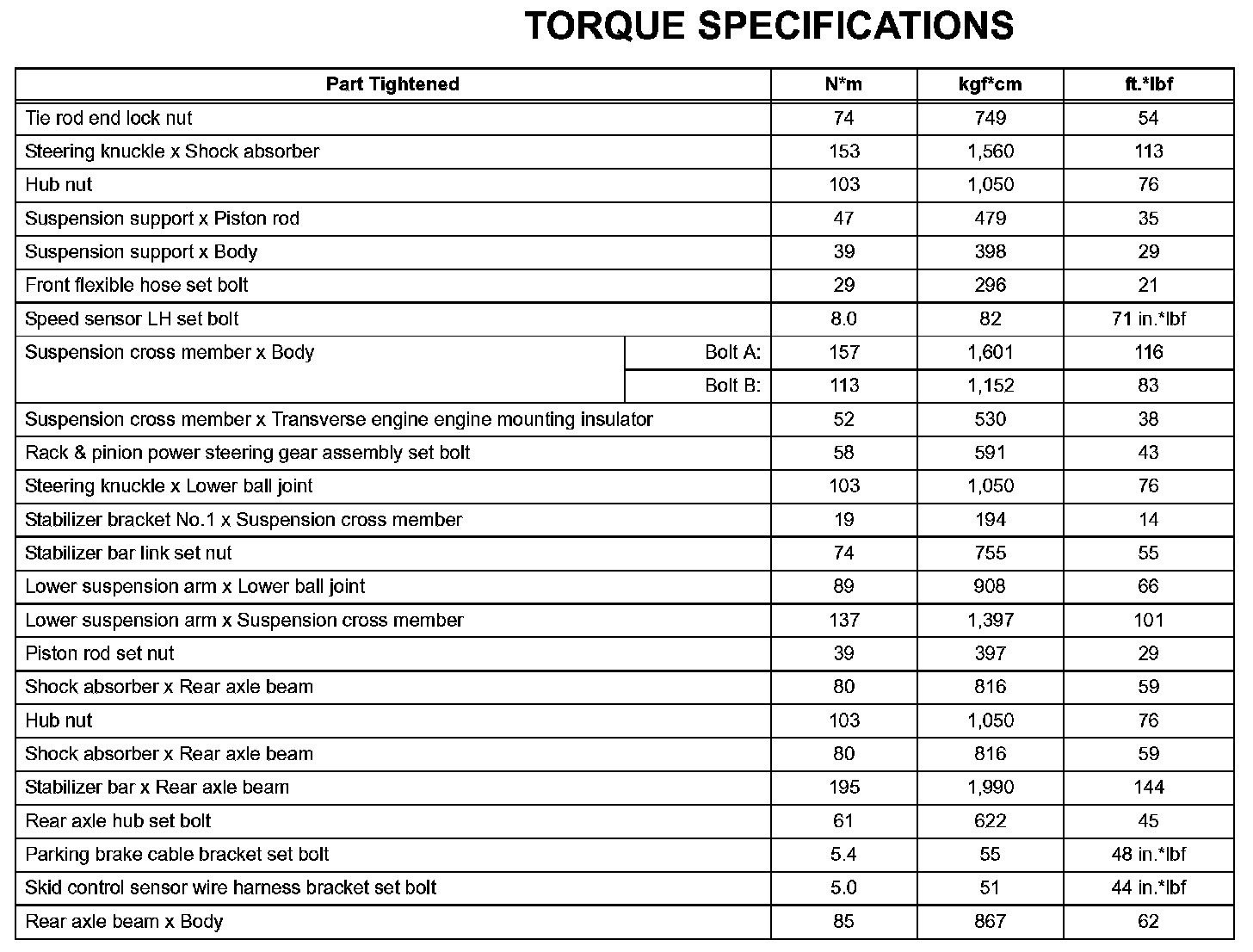 Suspension - Torque Specifications: