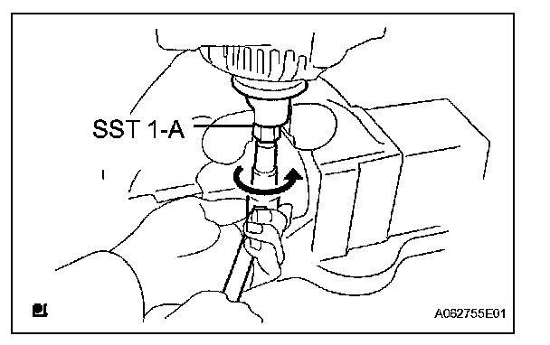 a. Hold SST 1-A with a torque wrench, then tighten SST 1-B counterclockwise to the specified torque.