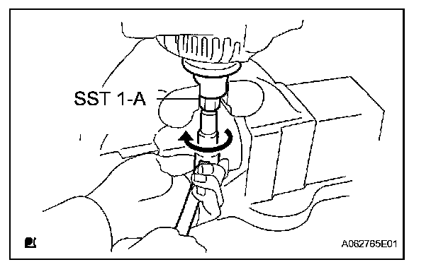 b. Hold SST 1-A with a torque wrench, then tighten SST 1-B counterclockwise to the specified torque.