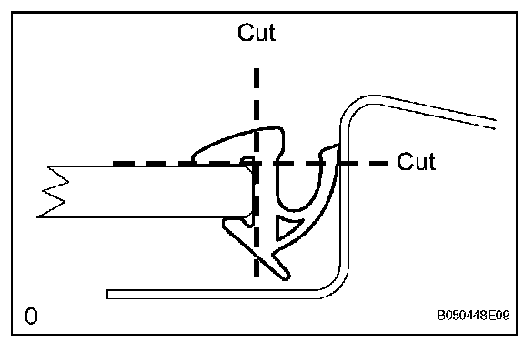 a. Using a knife, cut off the moulding as shown in the illustration.