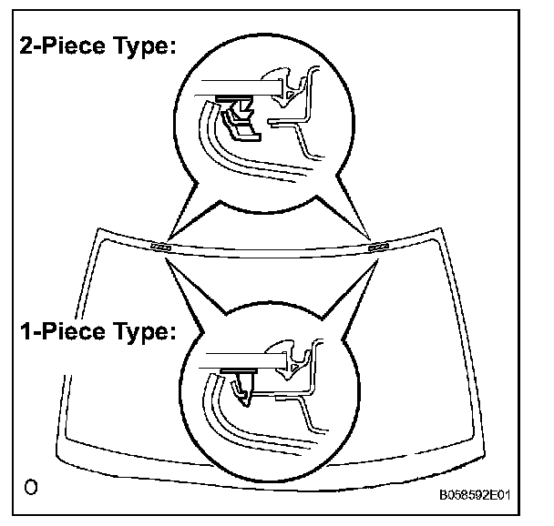 HINT: Depending on a vehicle type, either a 1-piece type or a 2-piece type of stopper is installed.