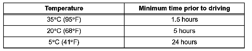 NOTICE: Do not drive the vehicle for the amount of time written in the table below.