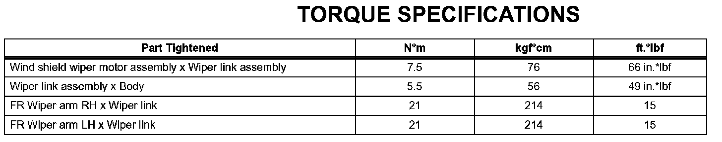 Wiper And Washer - Torque Specifications: