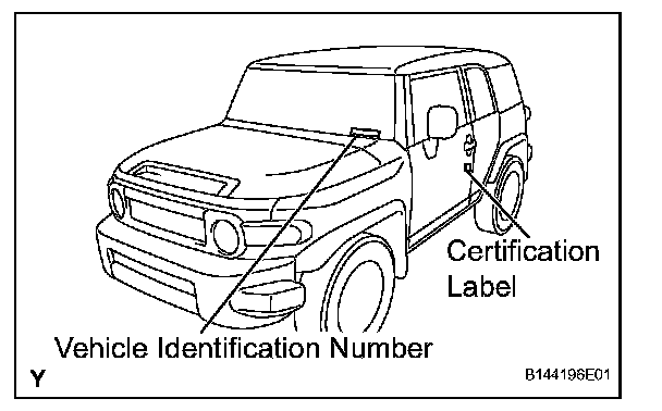 The vehicle identification number is stamped on the vehicle body and on the certification label, as shown in the illustration.