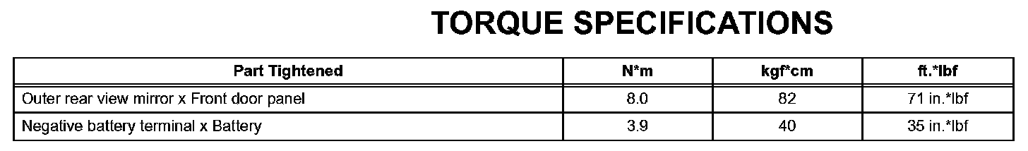 Mirror - Torque Specifications: