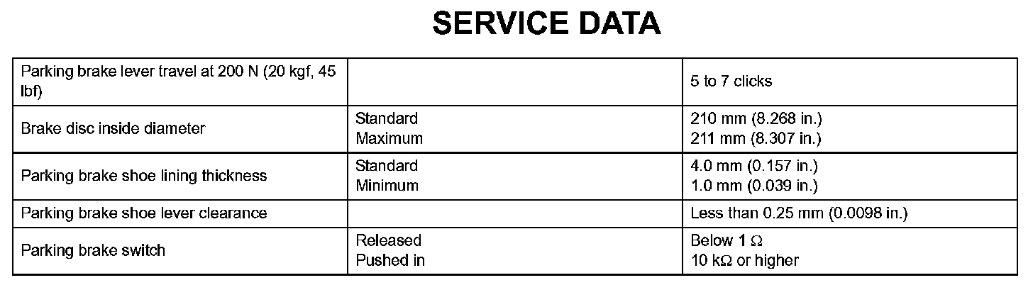Parking Brake - Service Data: