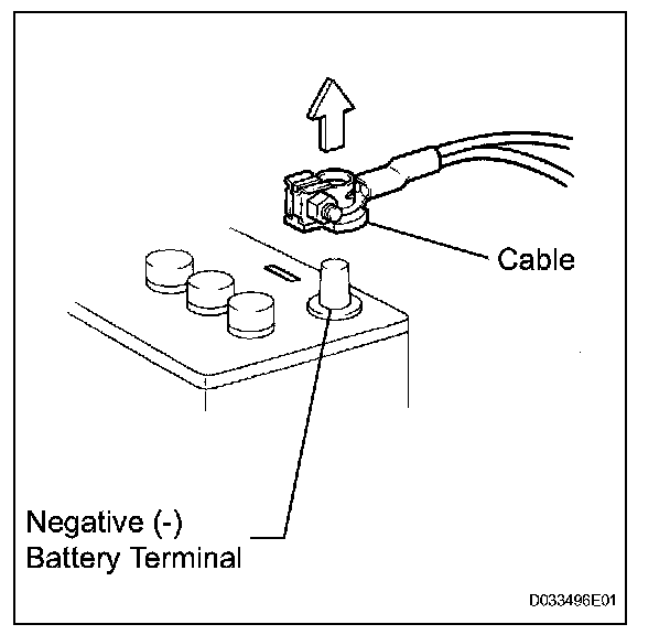 NOTE: When the cable is disconnected from the negative (-) battery terminal, initialize the given system(s) after the cable is reconnected.