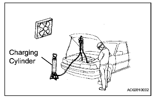 Open and close only the low pressure valve. If the high pressure valve is open, refrigerant flows in the reverse direction. This could cause the charging cylinder to rupture.
