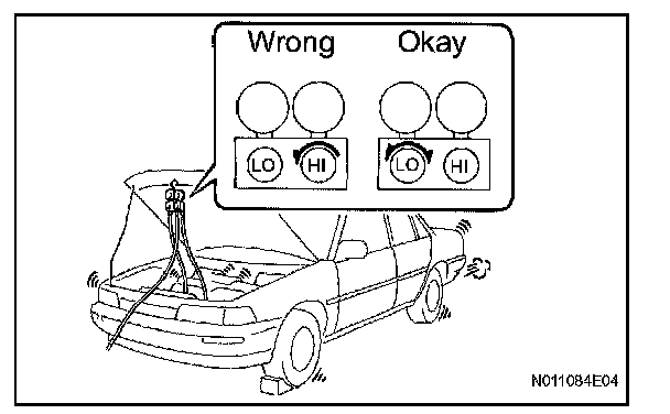 1. CONNECT THE BATTERY NEGATIVE TERMINAL TO THE CABLE AND RUN THE ENGINE AT NO LESS THAN 2,000 RPM FOR 2 MINUTE