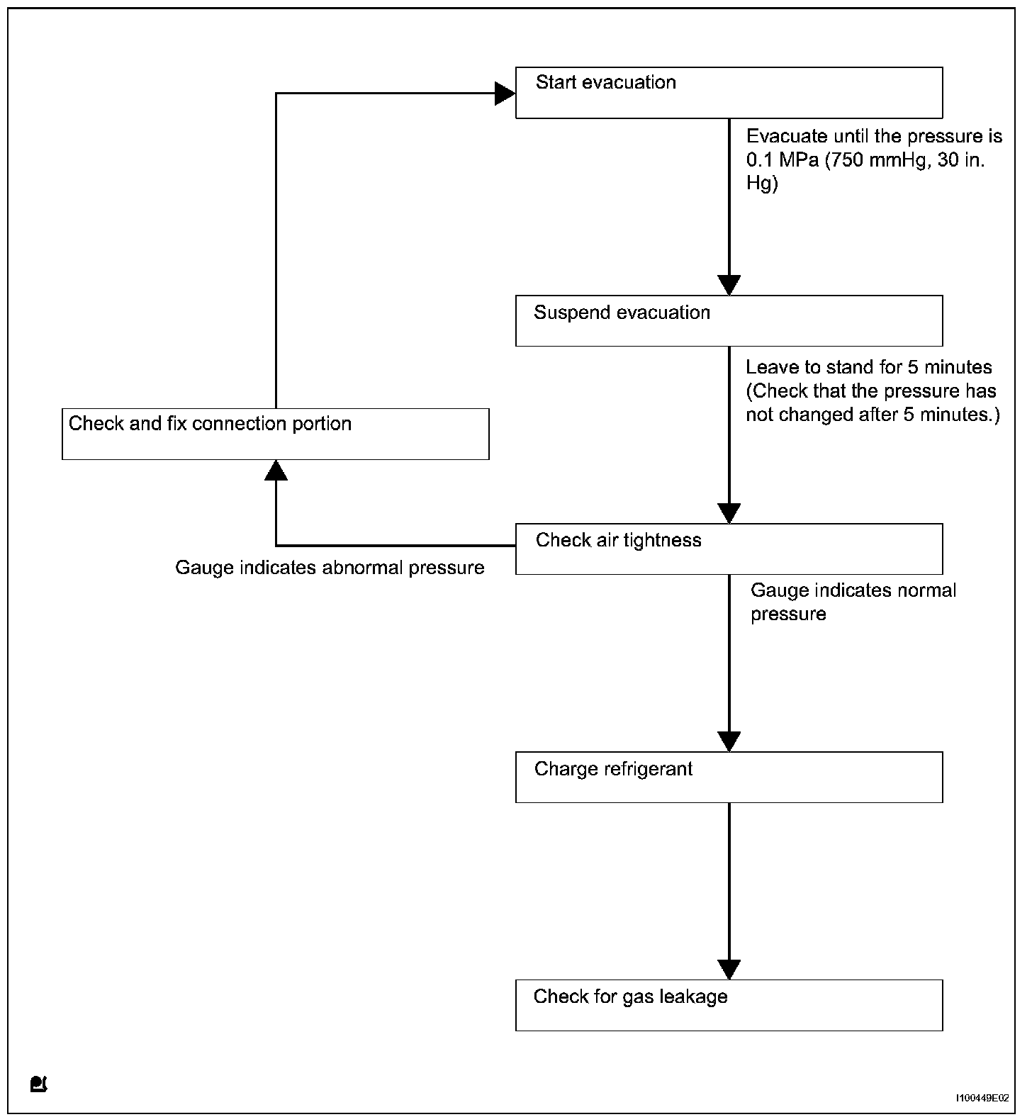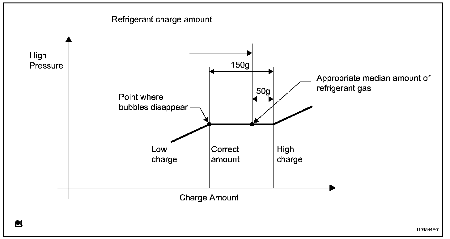 NOTE: Warm up the engine at less than 2,000 rpm for 2 minute or more after charging it with refrigerant.