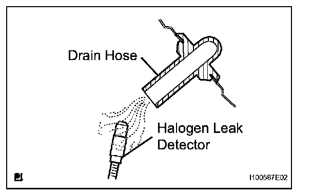 - When bringing the halogen leak detector close to the drain hose, make sure that the halogen leak detector does not react to the volatile gases.