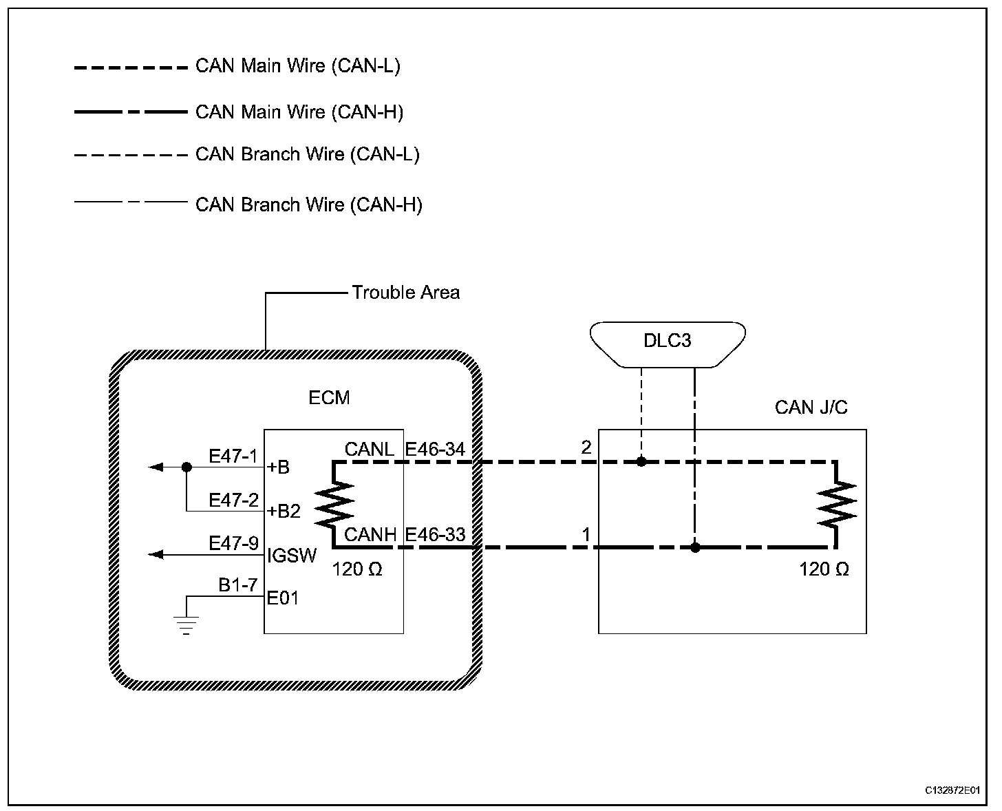 - Turn the ignition switch off before measuring the resistances of the CAN main wire and the CAN branch wire.