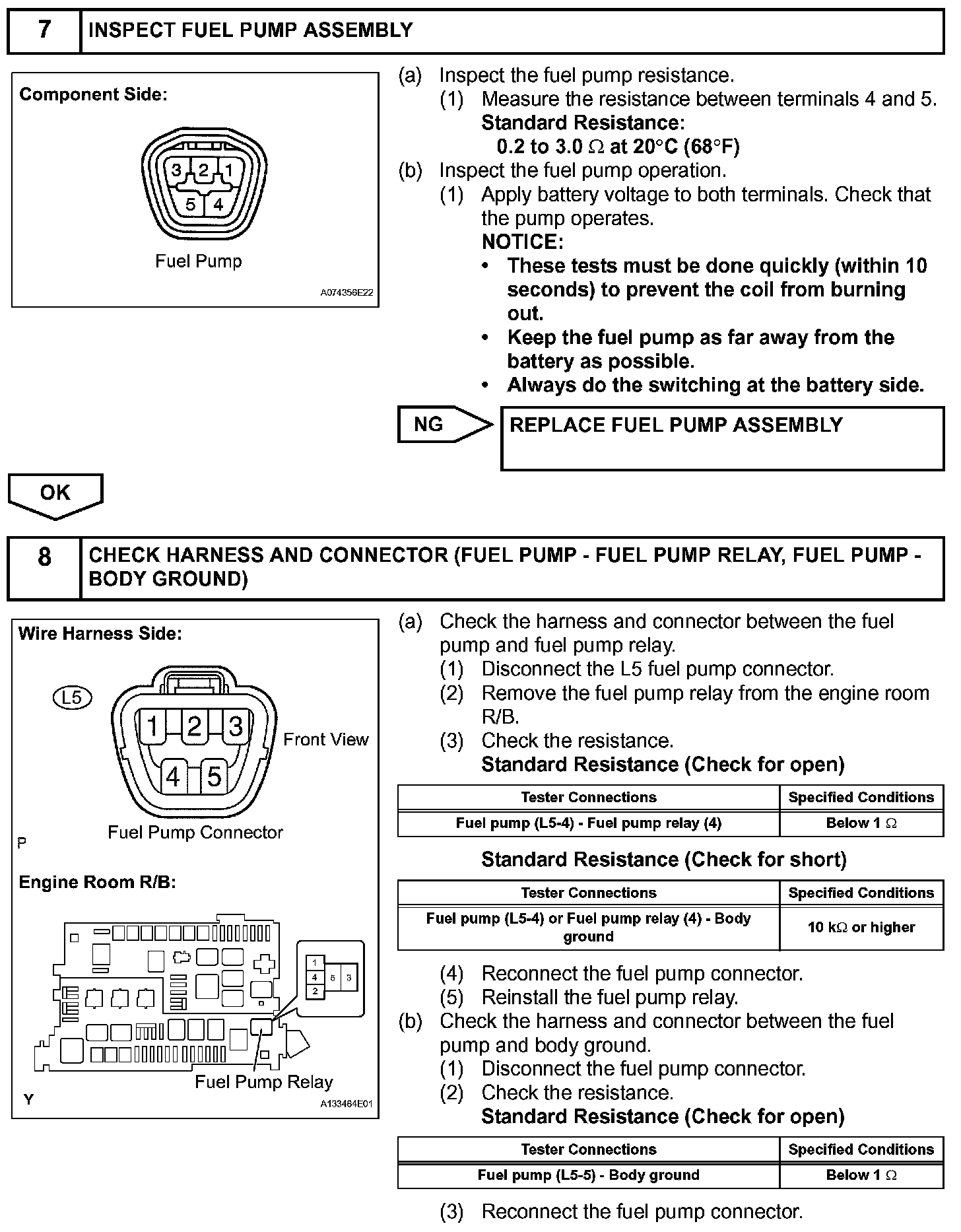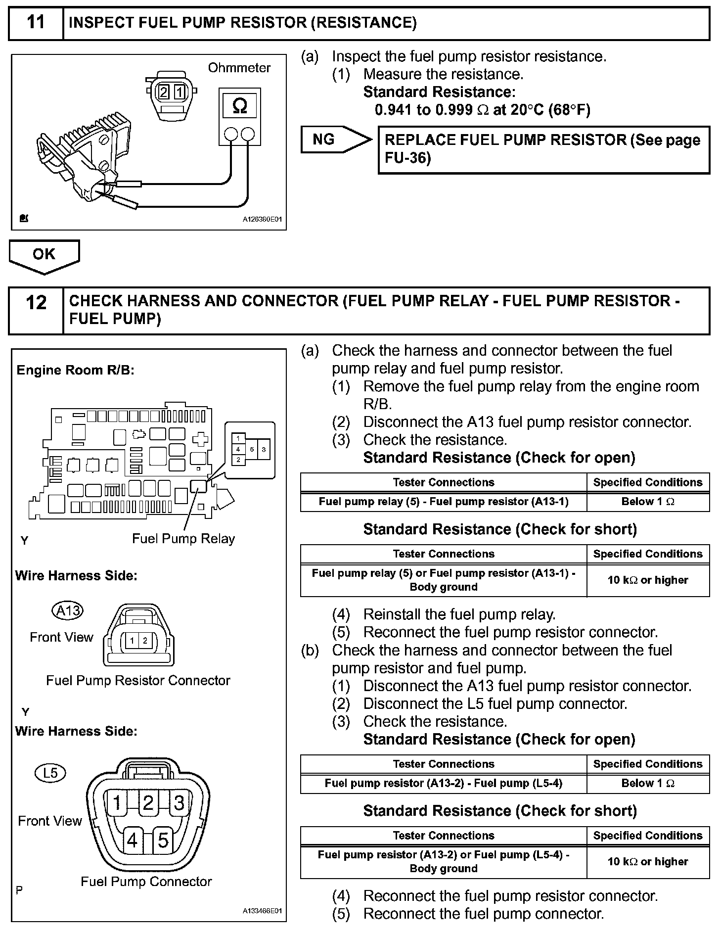 During idling or under light loads, Tr2 goes ON, and then power is supplied to the fuel pump via the fuel pump resistor. The fuel pump operates at low speed.