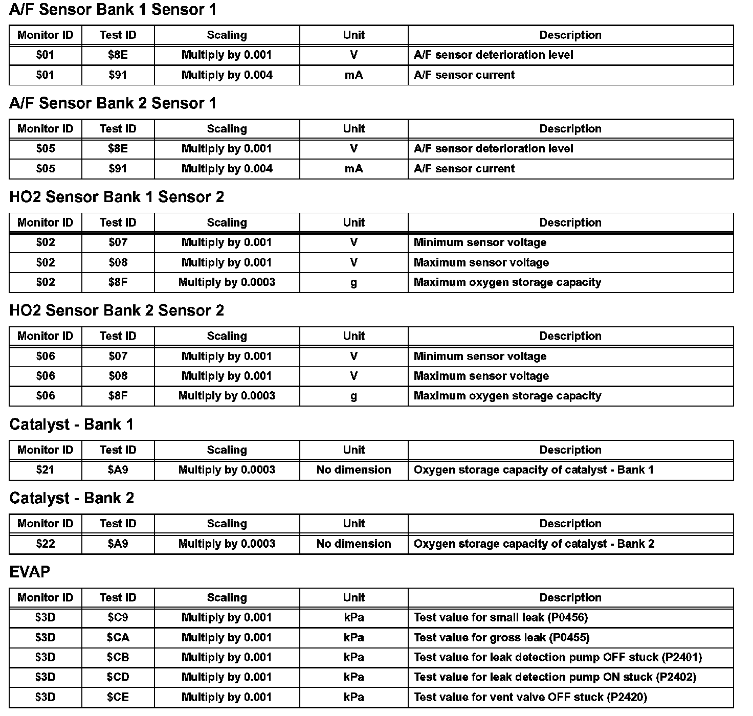 If you use a generic scan tool, multiply the value by the scaling value listed.