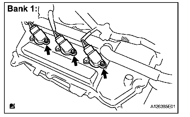 2. Remove the 3 bolts, then remove the 3 ignition coils.