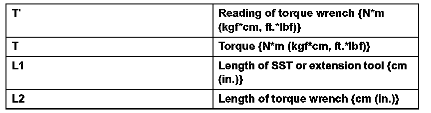 1. Use the formula below to calculate special torque values for situations where SST or an extension tool is combined with a torque wrench.