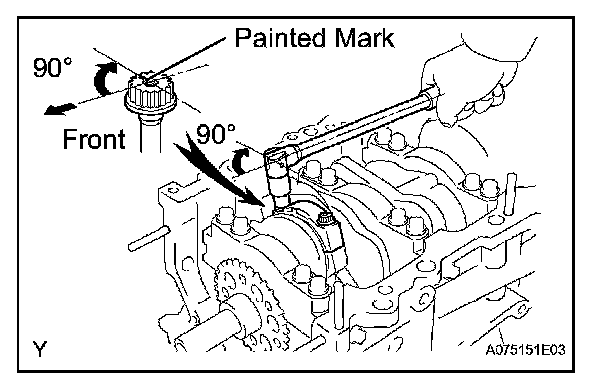 Retighten the cap bolts 90° as shown in the illustration.