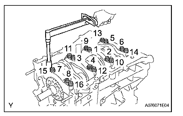 Retighten the bearing cap bolts 90° in the sequence as shown.