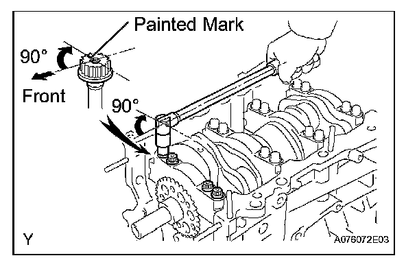 Retighten the cap bolts 90° as shown in the illustration.