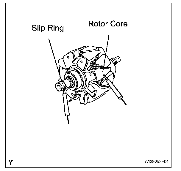 1. Using an ohmmeter, check the resistance between the slip ring and rotor.