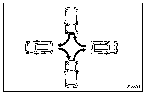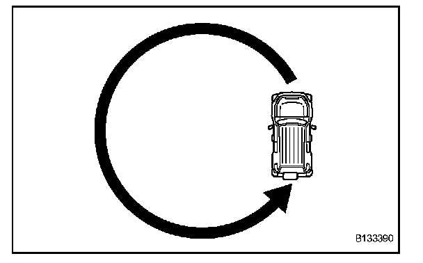 1. Drive the vehicle in a full circle within 2 minutes, at a vehicle speed of 5 mph (8 km/h) or lower, as shown in the illustration.