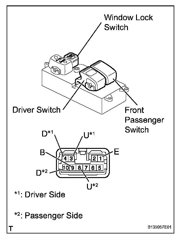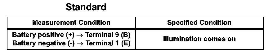 1. Apply battery voltage to the power window regulator master switch and check that the illumination comes on.