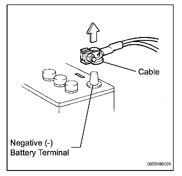 NOTICE: When the cable is disconnected from the negative (-) battery terminal, initialize the following system(s) after the cable is reconnected.